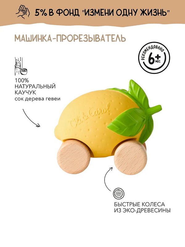 Игрушка-прорезыватель на деревянных колёсах Oli&Carol Машинка Lou the Lemon