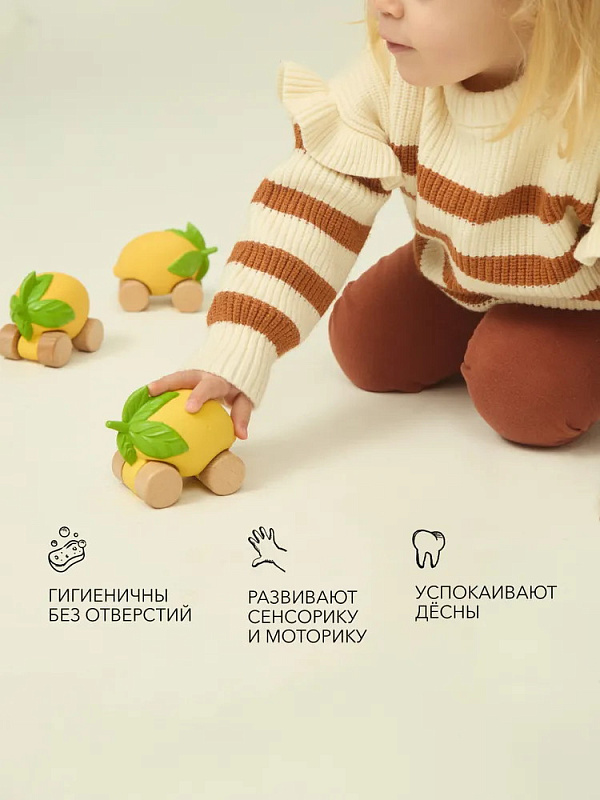 Green Cars — коллекция из 6 экологичных игрушек в виде овощей и фруктов на колёсиках. Они изготовлены из натурального каучука и дерева и раскрашены вручную с заботой о детях и окружающей среде. Качество по европейским стандартам подтверждено сертификацией EAC. Машинки в ярком дизайне вдохновляют детей играть и познавать окружающий мир, а ещё развивают моторику и воображение.