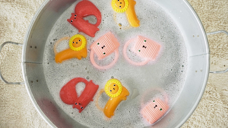 Так как в игрушке-прорезывателе нет отверстий, она подходит для игр во время купания. Благодаря своей форме она легко крепится к держателю для пустышки.