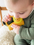 Так как в игрушке-прорезывателе нет отверстий, она подходит для игр во время купания. Благодаря своей форме она легко крепится к держателю для пустышки.