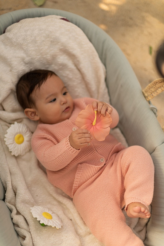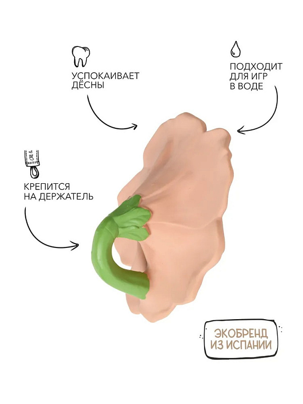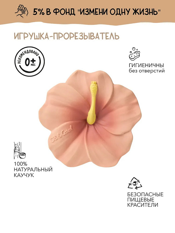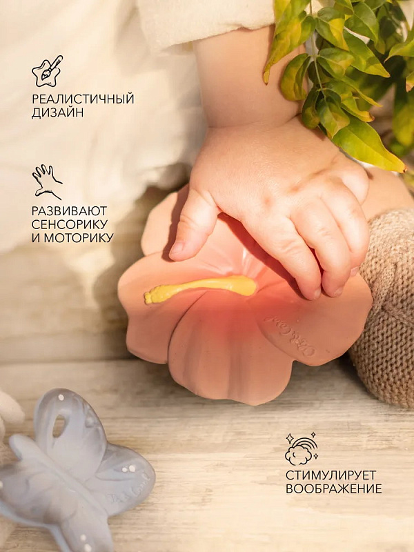 Каучуковый прорезыватель IRIS THE HIBISCUS от Oli&Carol не только оказывает массажный эффект на дёсны, но и развивает воображение, цветовое восприятие, мелкую моторику. Реалистичный дизайн знакомит малыша с окружающим миром. Игрушку удобно брать с собой, подвесив на держатель для пустышки.