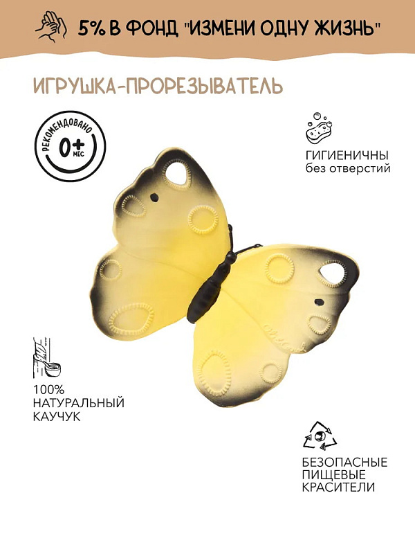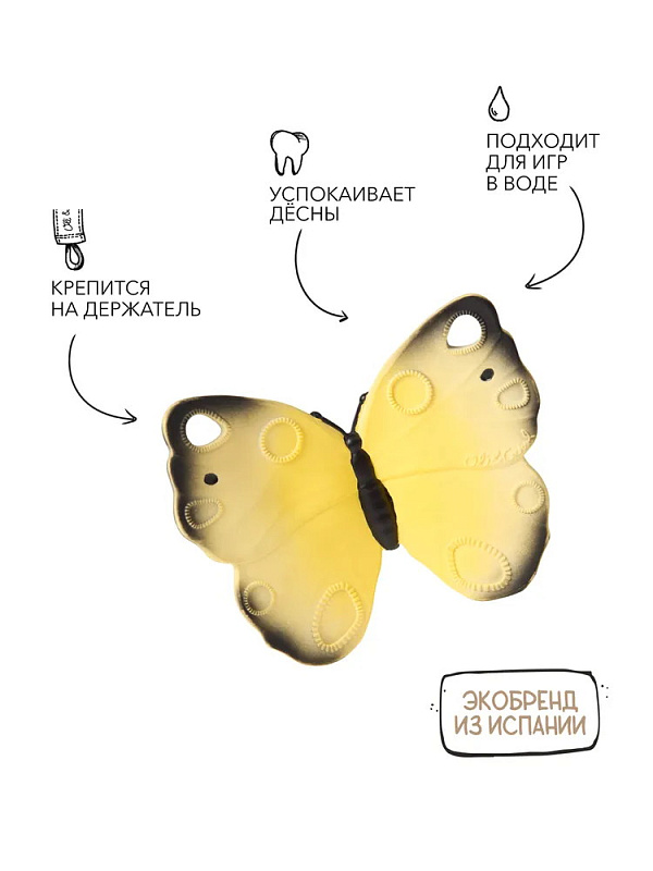 Каучуковый прорезыватель KATIA THE BUTTERFLY от Oli&Carol не только оказывает массажный эффект на дёсны, но и развивает воображение, цветовое восприятие, мелкую моторику. Реалистичный дизайн знакомит малыша с окружающим миром. Игрушку удобно брать с собой, подвесив на держатель для пустышки.