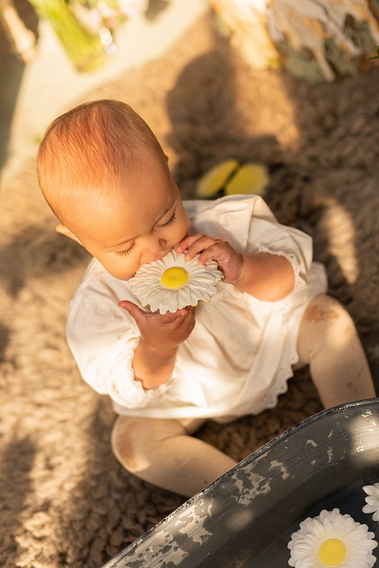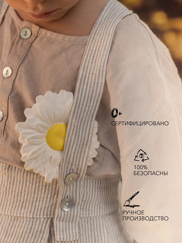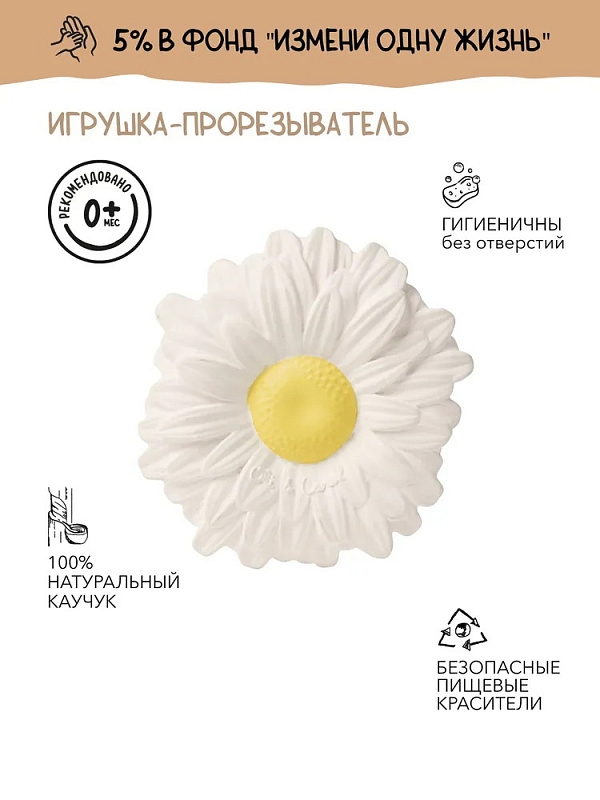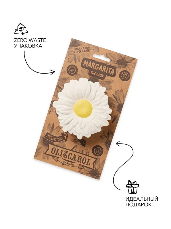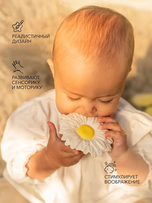 Каучуковый прорезыватель MARGARITA THE DAISY от Oli&Carol не только оказывает массажный эффект на дёсны, но и развивает воображение, цветовое восприятие, мелкую моторику. Реалистичный дизайн знакомит малыша с окружающим миром. Игрушку удобно брать с собой, подвесив на держатель для пустышки.