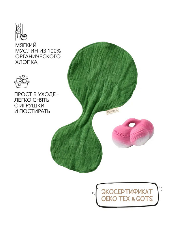Платочек выполнен из муслина, органического хлопка высокого качества, мягкого и хорошо впитывающего. Легко снимается. Сертифицирован GOTS и OEKO-TEX.