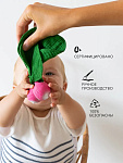 Компактный размер идеально подходит для маленьких ручек. Удобно брать с собой, подвесив за специальное крепление на держатель для пустышки.