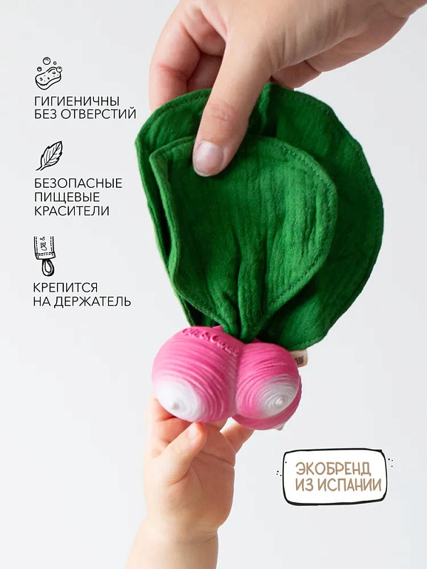 Прорезыватели из коллекции MINIDOUDOU-TEETHER от бренда Oli&Carol в виде популярных овощей и фруктов помогут малышу чувствовать себя максимально комфортно в период прорезывания зубов. Мягкий каучук хорошо массирует дёсны, платочек спасает от обильного слюноотделения, реалистичный дизайн и фактура способствуют сенсорному развитию малыша.