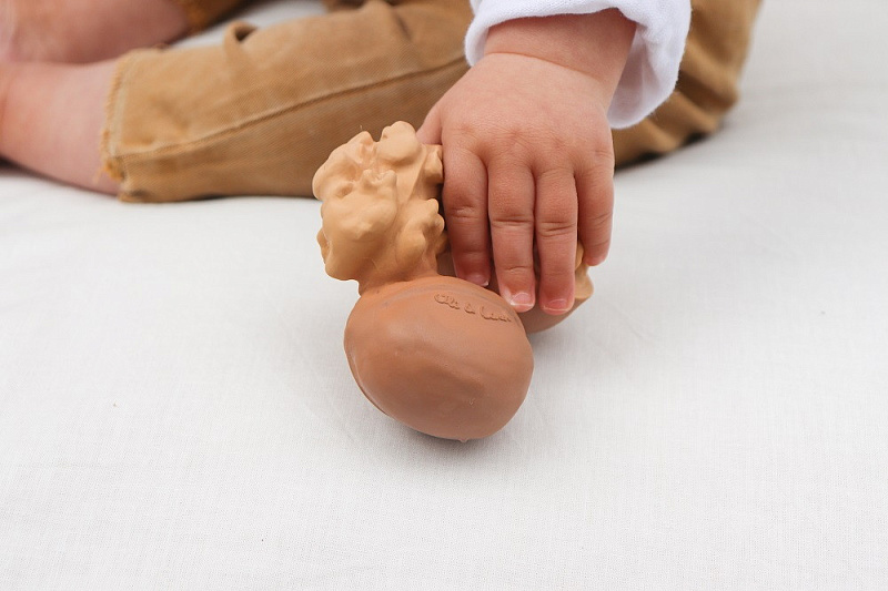 Выполненный из 100% натурального каучука (из сока дерева гевеи), прорезыватель хорошо успокаивает дёсны. Цвет и фактура стимулируют сенсорное развитие ребёнка.
