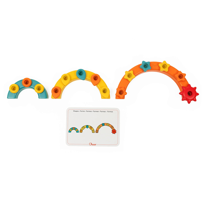 Встречайте новое поколение сортеров! Cортер Chicco «Радуга» разработан в сотрудничестве с ANPE (Национальной ассоциацией итальянских педагогов) и вдохновлен методом Монтессори. В комплекте 22 фишки, 3 дуги, 2 карточки с подсказками и мешочек для хранения.
