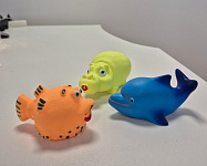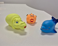 Перед первым применением промойте резиновые игрушки для купания теплой водой с детским мылом.