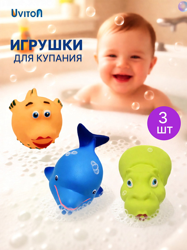 Игрушки для купания Uviton Дельфин, Бегемотик, Рыбка 3 шт 0085/01