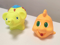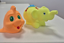 Перед первым использованием промойте резиновые игрушки для купания теплой водой с детским мылом.