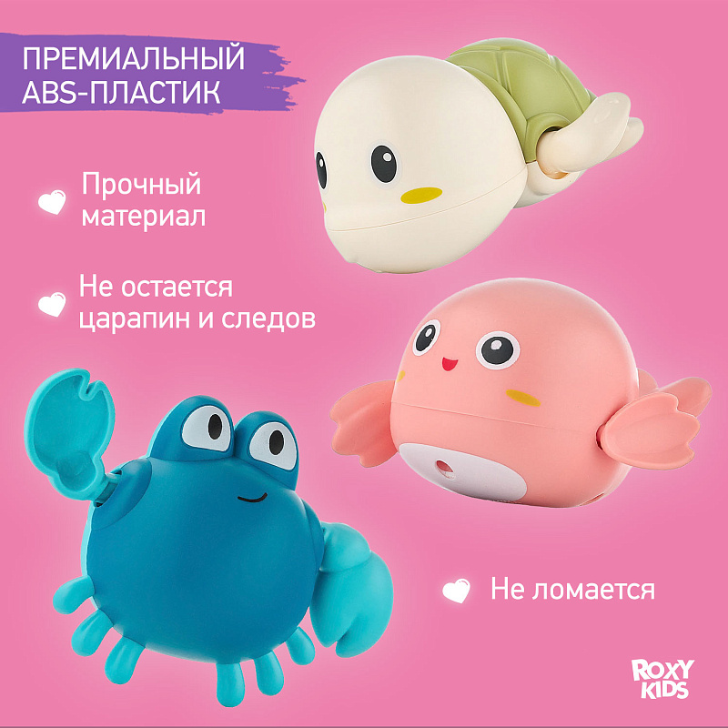 Игрушки для ванной Roxy-Kids заводные 3 шт RWIN-001 черепаха, краб, птичка