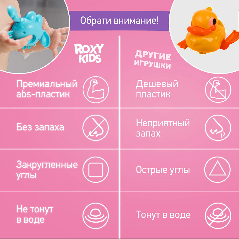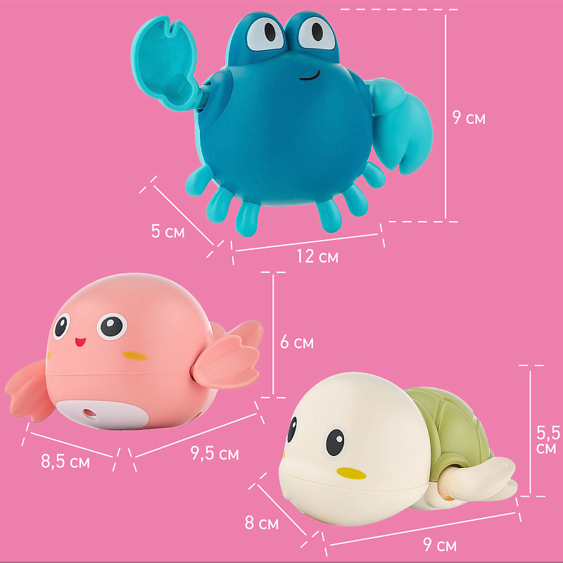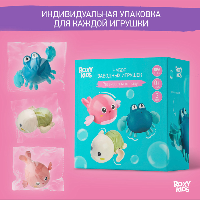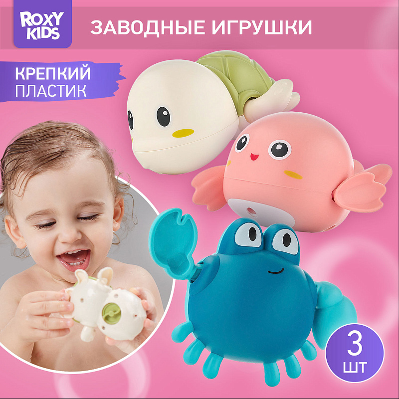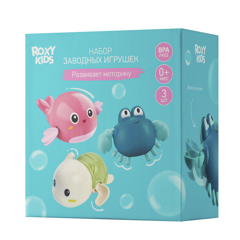 Отправьтесь в мир веселых водных приключений с набором заводных игрушек для ванны от ROXY-KIDS. Набор из 3-х игрушек идеально подойдет для купания в ванной, игр в бассейне или на пляже. Лапки игрушек вращаются на 360 градусов. Игрушки работают без батареек благодаря заводному механизму. Чтобы запустить игрушку, поверните механизм по часовой стрелке до упора и опустите игрушку в воду. Плавающие морские животные развеселят ребенка и поднимут малышу настроение! Благодаря небольшому размеру игрушки удобно держать в детской ручке. Игрушки сделаны из премиального абс-пластика с закругленными краями и абсолютно безопасны для малыша. Позвольте малышу насладиться каждым моментом купания с заводными игрушками от ROXY-KIDS!