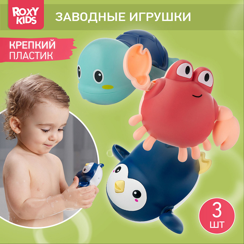 Игрушки для ванной Roxy-Kids заводные 3 шт RWIN-002 черепаха, краб, пингвин