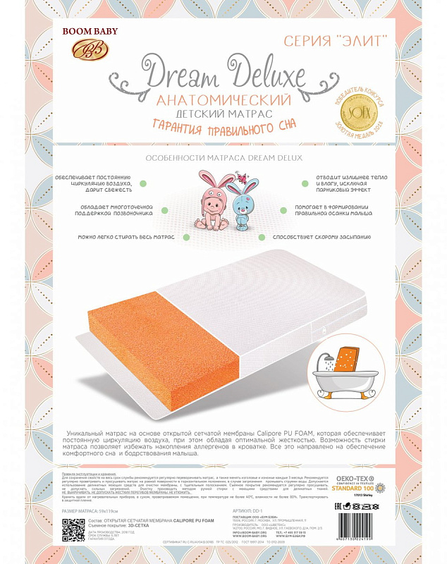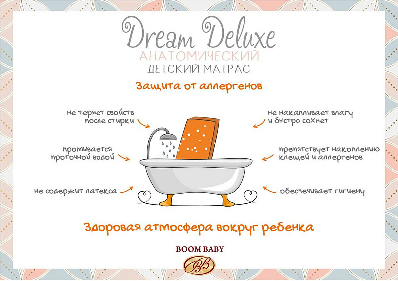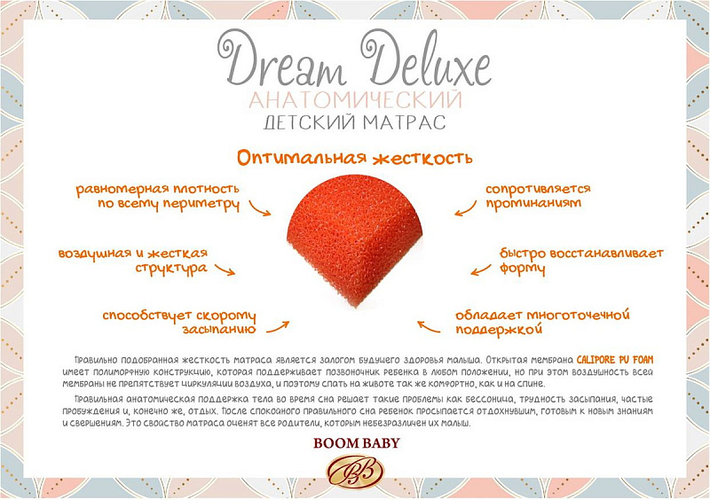 Детский инновационный анатомический матрас Boom Baby Dream Deluxe 120х60х9 см