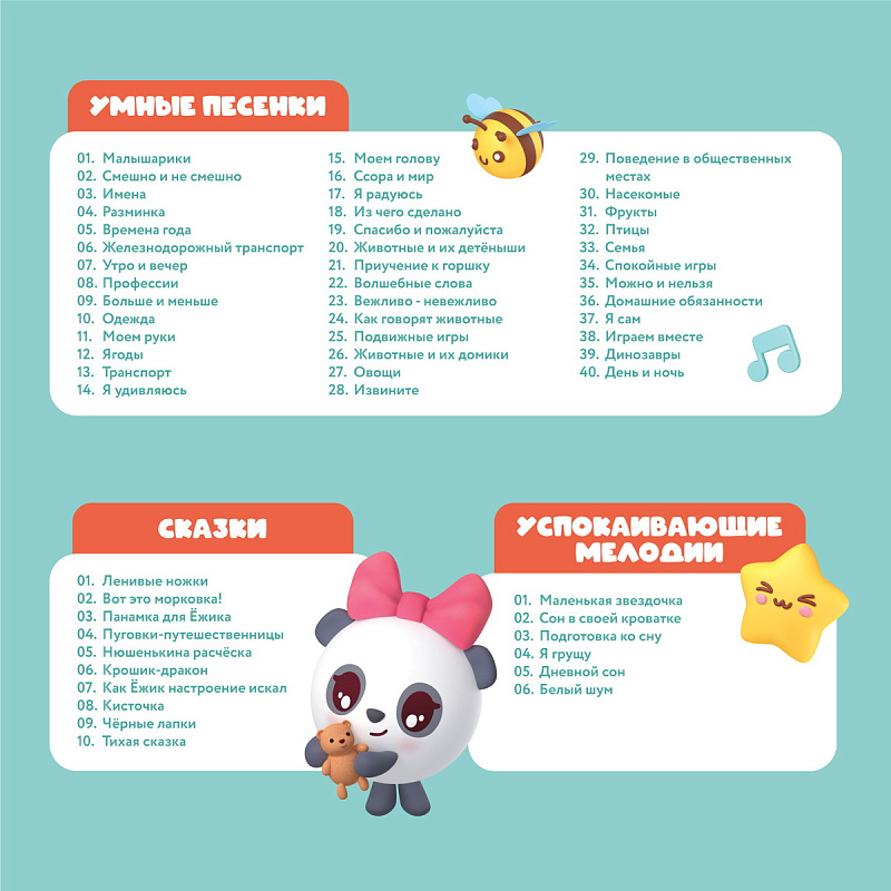 - Потрясите и она воспроизведёт 50 звуков из мира Малышариков.