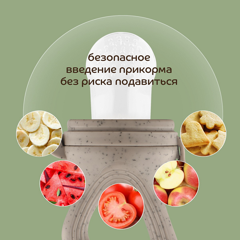 Изделие для прикорма незаменимый помощник при вводе первого прикорма. Изделие предназначено для ввода в рацион фруктов, овощей, печенья и других продуктов, соответствующих возрасту ребенка. Ребенок учится жевать и есть самостоятельно. Мягкая сеточка пропускает в виде пюре помещенные в нее продукты, минимизируя риск подавиться или поперхнутся большими кусочками.