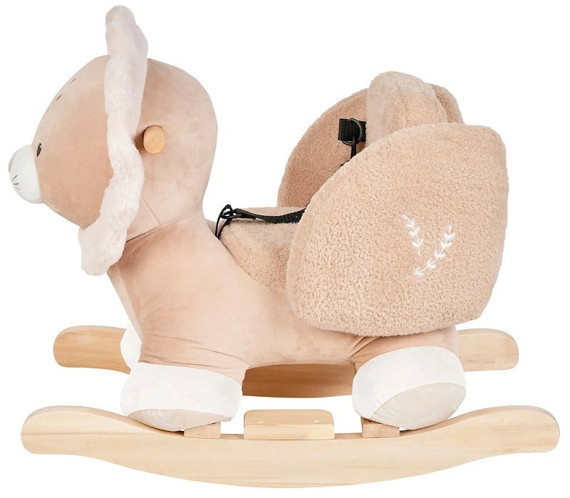 - предназначено для безопасного укачивания: широкое деревянное основание с подставками для ног, включая ремень безопасности, мягкое сиденье с боковыми опорами и ручки для маленьких ручек;