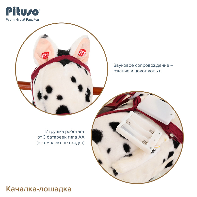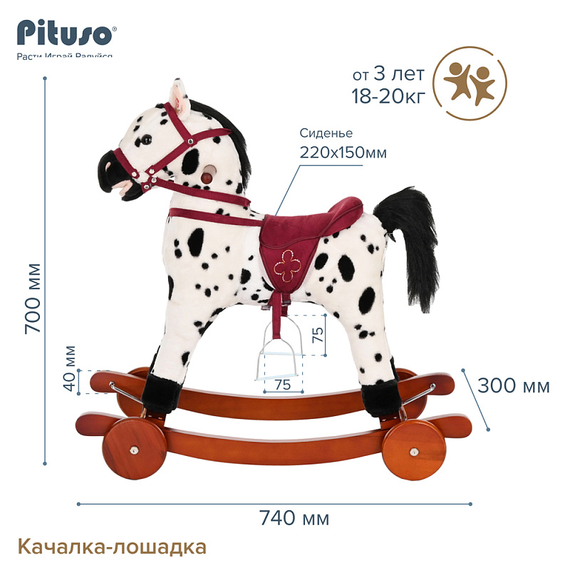 Детская качалка-лошадка Pituso Fandango с колесами GS2035W Белый с черными пятнами3 оценкиХарактеристики