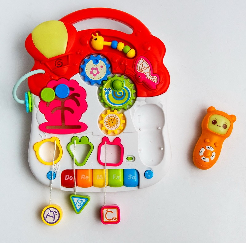 Многофункциональный игровой центр способствует развитию координации тела, слуха, зрительной памяти, мелкой моторики и сенсорного восприятия у ребенка. Каталка оснащена антискользящими колесами с блокираторами и противовесом. Игровая панель имеет звуковые эффекты и крепление для кровати.