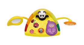 - Панель оформлена самыми разными предметами, элементами, способными развеселить ребенка, развить мышление, память, логику, моторику.