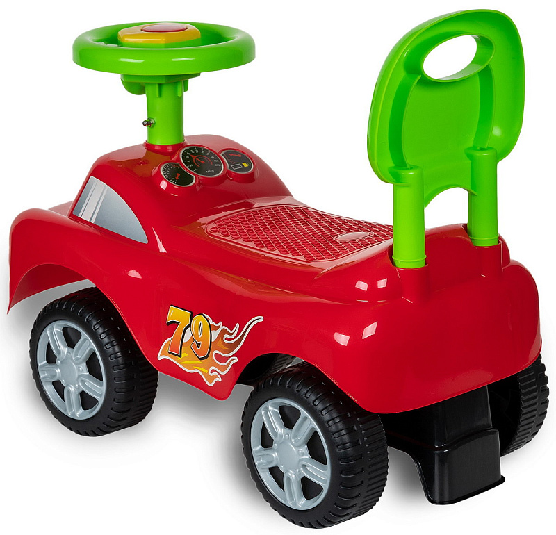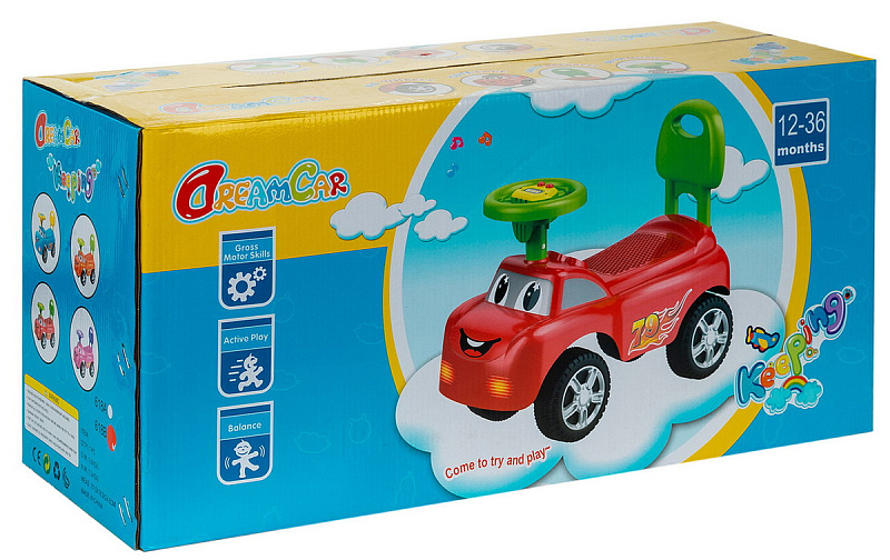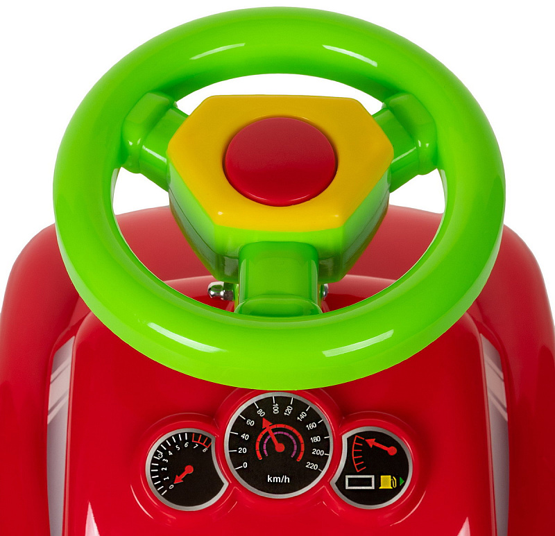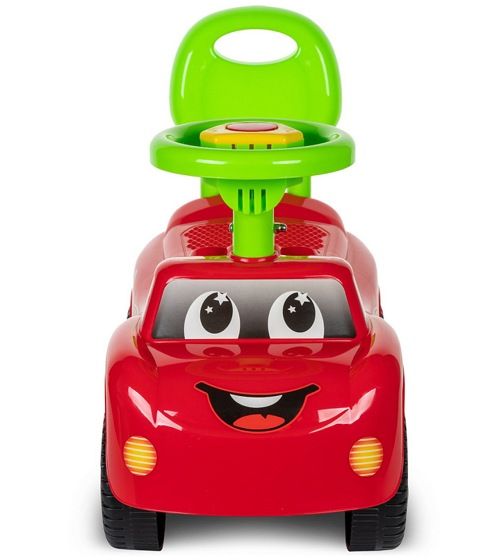 С этой яркой каталкой можно смело отправляться на прогулку. Большие колеса обеспечат хорошую проходимость. Каталка предназначена для детей в возрасте от 12 месяцев до 3 лет. Держась за спинку, ребенок также может самостоятельно освоить навыки ходьбы. Модель полностью отвечает всем требованиям безопасности, не имеет острых углов, выполнена из ударопрочного и гипоаллергенного пластика. Каталку можно использовать как дома, так и на улице, под обязательным присмотром взрослых. В комплекте идут наклейки, которые можно наклеить на каталку вместе с ребенком.поворотный руль