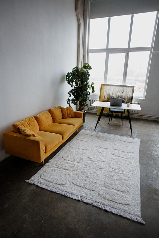 Объемный узор придает ковру изысканность и текстуру, делая его центральным элементом вашего пространства. Ковер BUSHONG от Lillaland идеально подходит для гостиной, спальни или детской комнаты, добавляя нотку уюта и стиля в любой интерьер. Его нейтральный оттенок легко сочетается с различными цветовыми палитрами и стилями декора. Почувствуйте мягкость и комфорт под ногами с хлопковым ковром BUSHONG от Lillaland и превратите свой дом в островок уюта и гармонии. Он легко чистится, что делает его практичным и стильным выбором для любого дома.