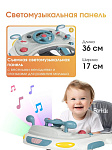 - Развивающая панель со световыми и звуковыми эффектами (36×17 см) – стимулирует сенсорное восприятие.