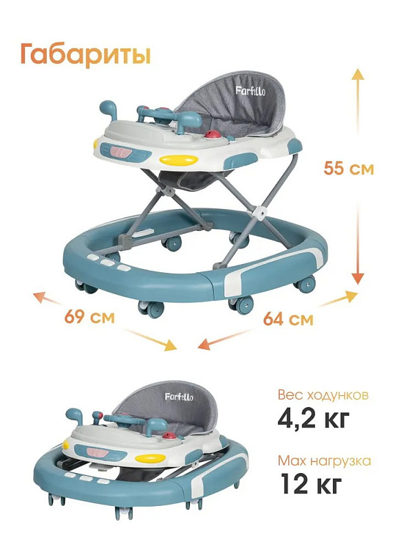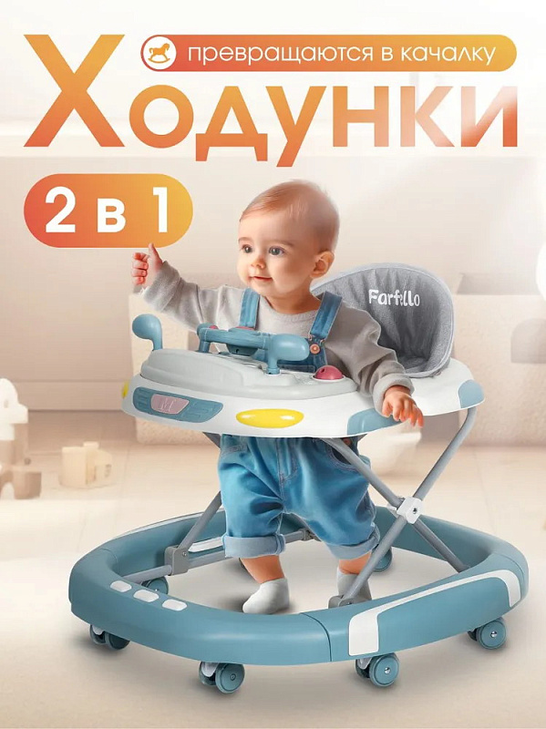 Универсальные ходунки-качалка 2 в 1 – Farfello A5 для веселого развития малыша. Познакомьте ребенка с миром движений в игровой форме! Многофункциональные ходунки легко превращаются в уютную качалку, обеспечивая разнообразие игр и активностей.