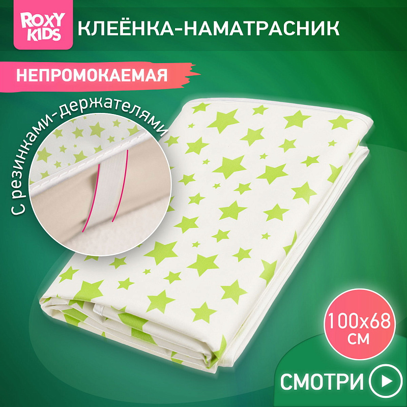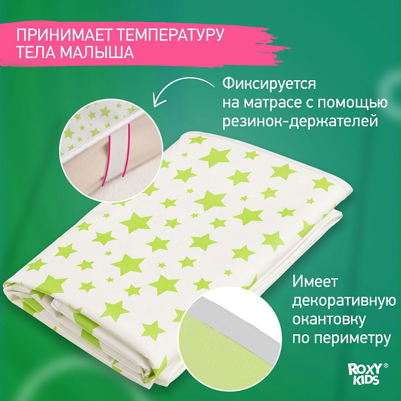 Клеёнка-наматрасник с резинками-держателями Roxy-Kids Фисташковые звезды 68*100 смНет оценокХарактеристики