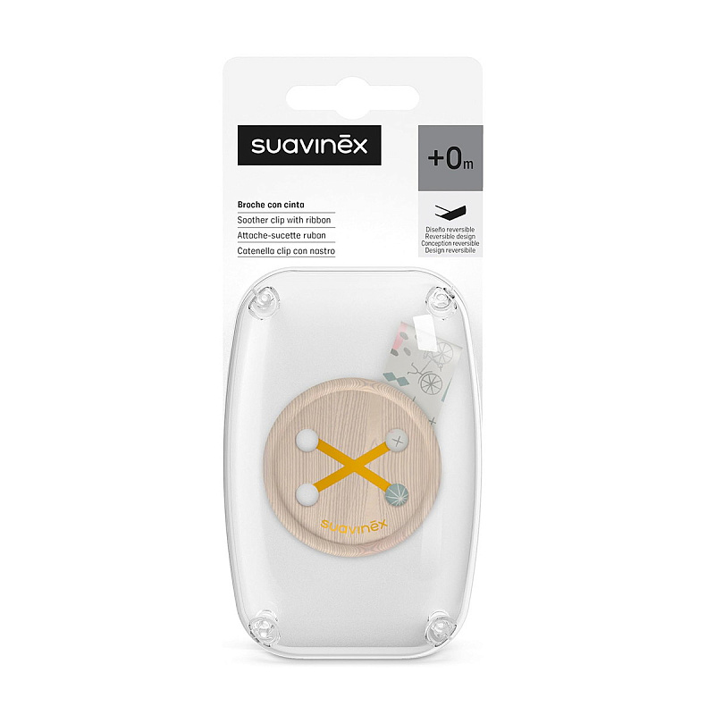 Клипса с лентой для пустышки Suavinex — незаменимый аксессуар на прогулках и во время игр: с помощью прищепки клипса крепится к одежде малыша, сумке или коляске, а значит пустышка не упадет на землю и не потеряется.