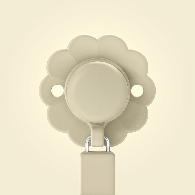 - Крепится к одежде с помощью прищепки-держателя, к пустышке —специальным карабином