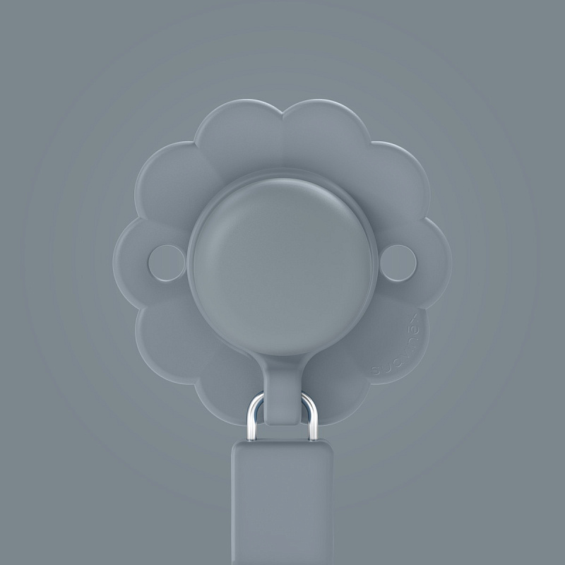 - Крепится к одежде с помощью прищепки-держателя, к пустышке —специальным карабином