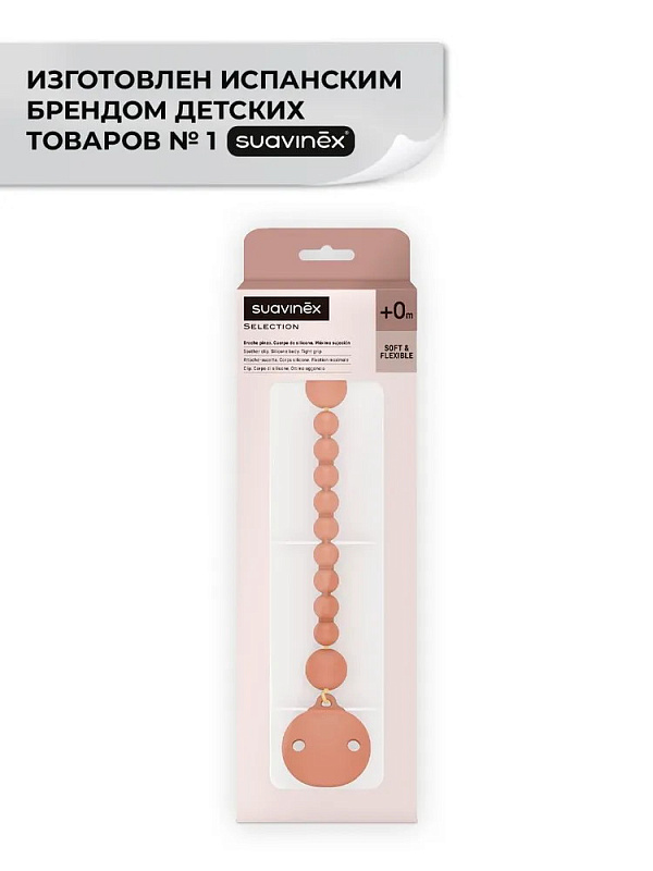 Клипса с цепочкой Suavinex для крепления соски-пустышки к одежде 401519 BRICK RED