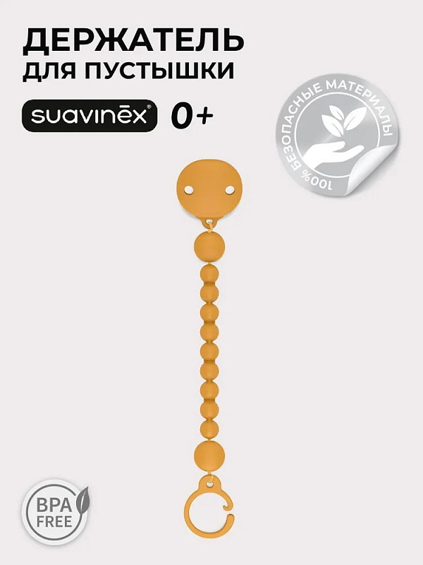 Клипса с цепочкой Suavinex для крепления соски-пустышки к одежде 401520 MUSTARD