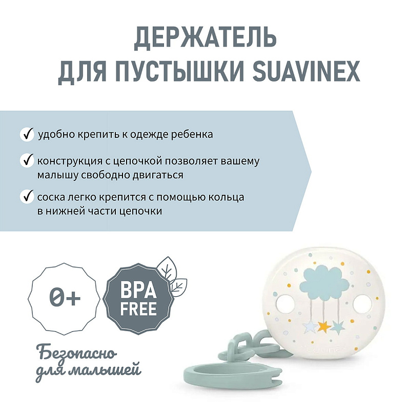 Клипса с цепочкой Suavinex Dreams для крепления соски-пустышки к одежде 308235 BLUEНет оценокХарактеристики