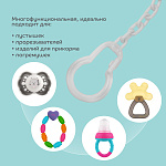 Клипса для соски-пустышки с цепочкой незаменима для прогулок. Специальная клипса прочно крепится к одежде ребенка и предохраняет пустышку от случайного падения и загрязнения. Расстегните специальное кольцо клипсы, прикрепите его к соске-пустышке. С другой стороны клипсу необходимо пристегнуть к одежде малыша при помощи специальной застежки.