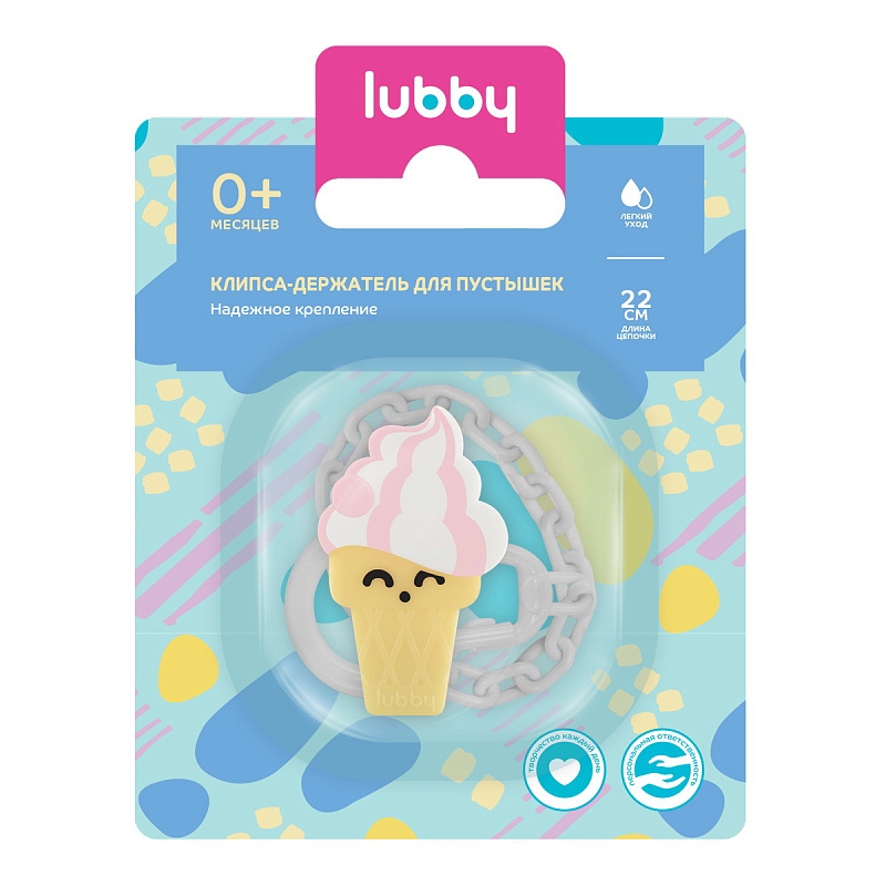 Клипса-держатель Lubby Мороженое для пустышек, цепочка, от 0 мес. 28405Нет оценокХарактеристики