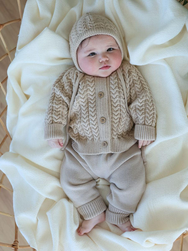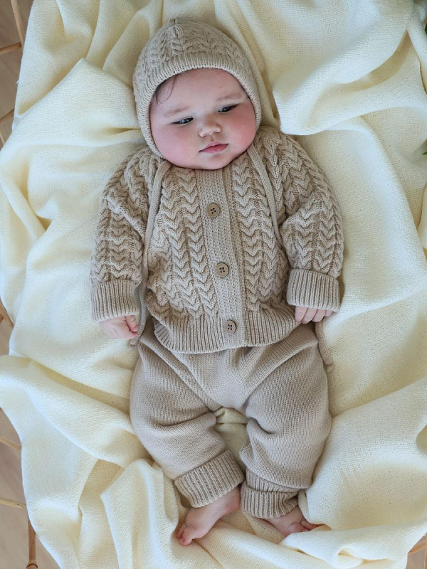 Кофточка с капюшоном и штанишки Little Star Косы 80027 (ЧЗ-нк) бежевый лайт 62