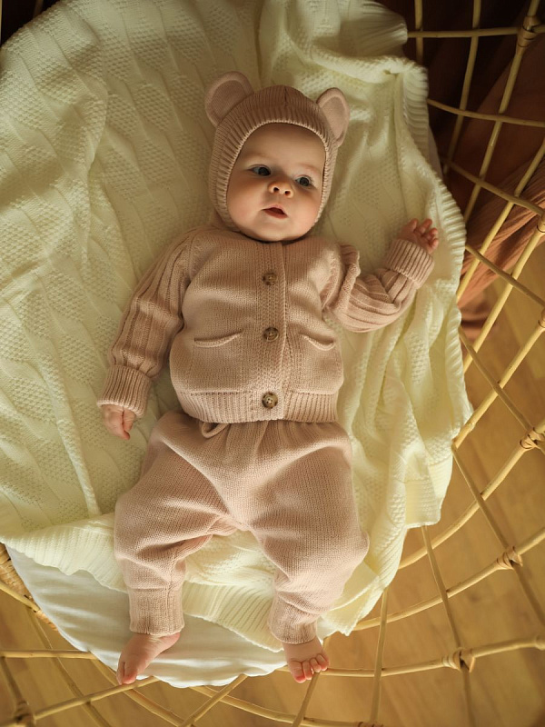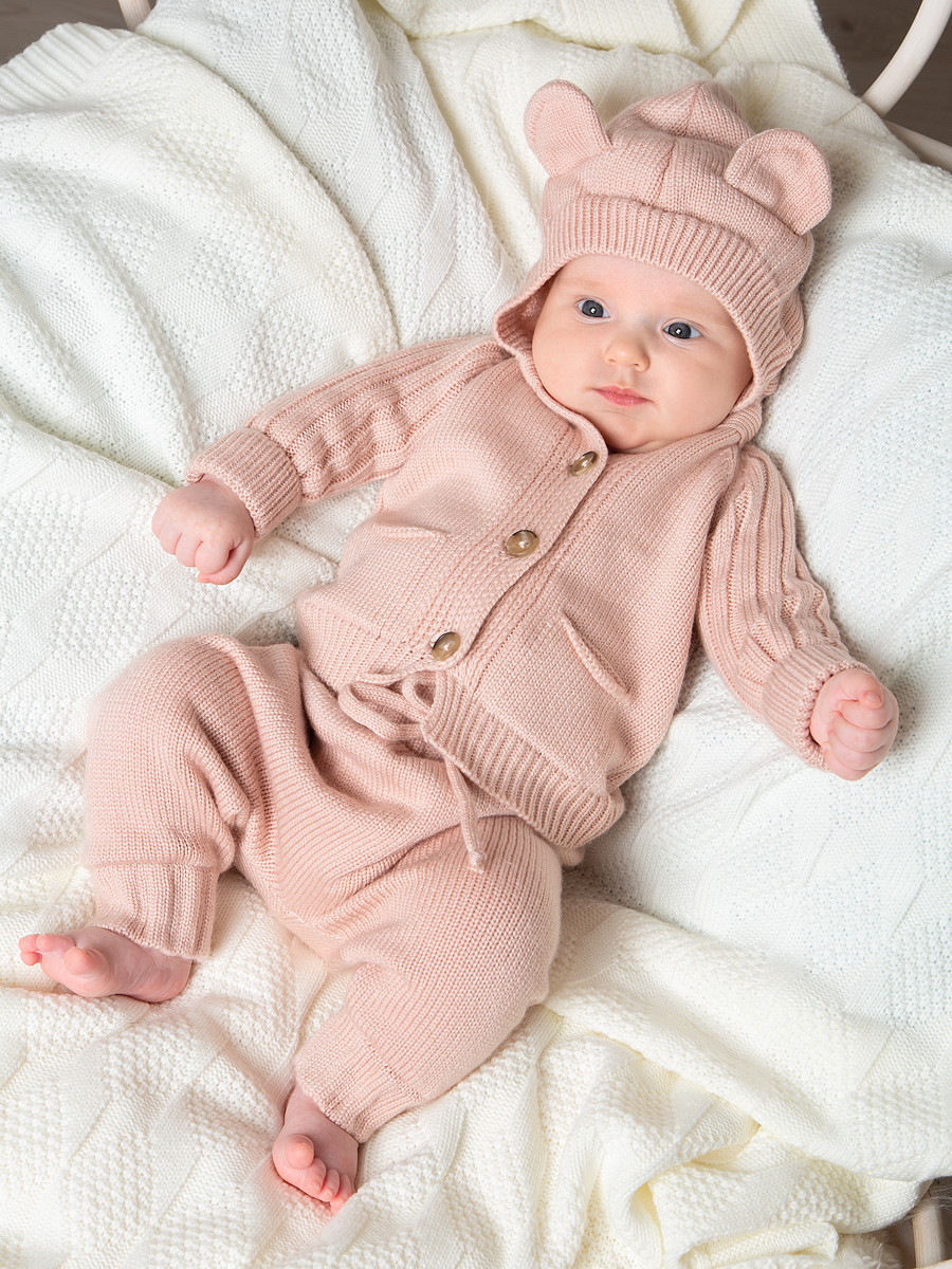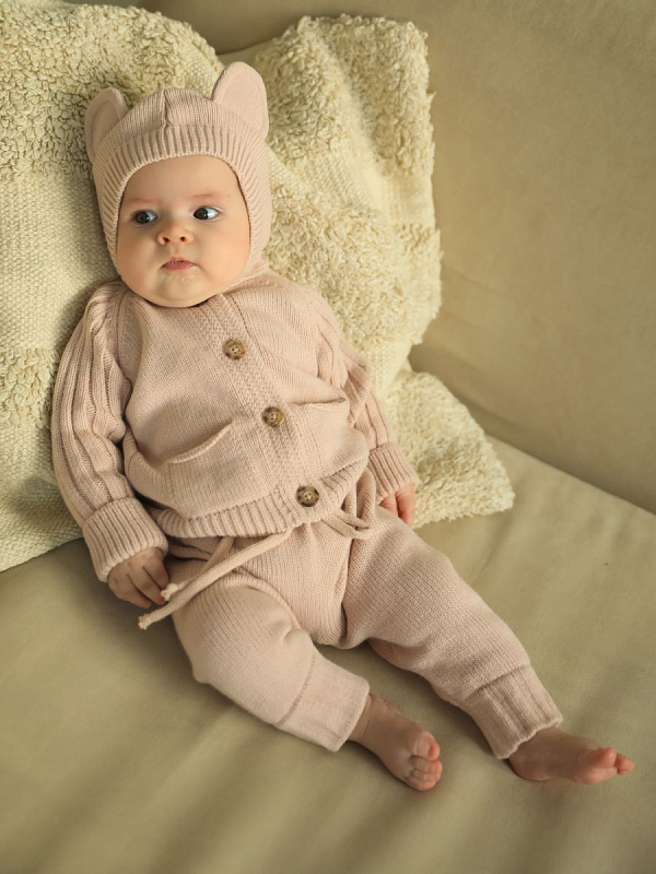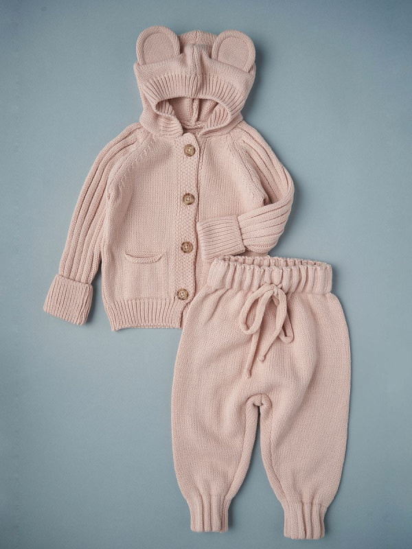Кофточка с капюшоном и штанишки Little Star Лапша 0011 (ЧЗ-нк) пудровый 62