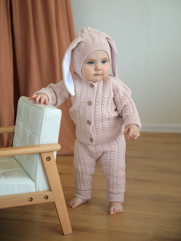 Кофточка с капюшоном и штанишки Little Star Зайчонок 80019 (ЧЗ-нк) пудра 62