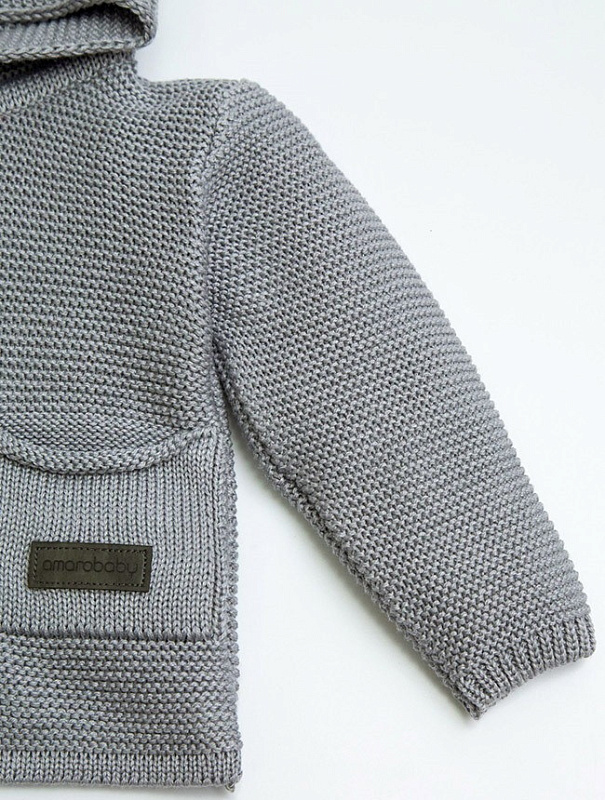 Кофточка выполнена в стильной объемной вязке, придающей ей невероятную уютную фактуру. Глубокий капюшон защитит от ветра, а забавные ушки придадут милый вид любому ребенку. Благодаря натуральному хлопку в составе, кофточка обладает отличными терморегулирующими свойствами, мягкой структурой, хорошо дышит и сохраняет тепло.Вязаная кофточка с капюшоном Amarobaby линейки Pure Love станет одной из самых удобных вещей в гардеробе вашего малыша!
