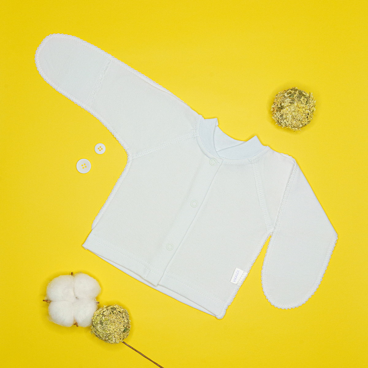 Кофточка для новорожденных, застегивается спереди на кнопки. Выполнена из гипоаллергенного 100% хлопка, который не раздражает нежную детскую кожу. Застёжка по всей длине обеспечит быстрое переодевание. Швы наружу не будут доставлять малышу неудобств. Ворот с мягким эластичным кантом. Модель можно носить дома (для сна и бодрствования), как первый слой летом и как нательное белье зимой или в демисезон. Дизайн разработан итальянскими модельерами. Товар сертифицирован.