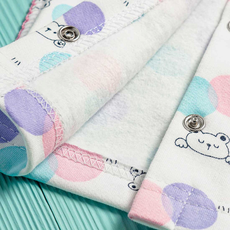 Кофточка для новорожденных выполнена из мягкого футера. Застегивается спереди на кнопки. Кофточка для новорожденного малыша выполнена из гипоаллергенного 100% хлопка, который не раздражает нежную детскую кожу. Застёжка по всей длине обеспечит быстрое переодевание. Швы наружу не будут доставлять малышу неудобств. Ворот с мягким эластичным кантом. Модель с длинным рукавом, дополненным антицарапками, чтобы малыш не поцарапал себя во сне, при желании ручки ребенка можно освободить. Одежда для новорожденного подходит как для девочки, так и для мальчика, можно носить дома (для сна и бодрствования), как первый слой летом и как нательное белье зимой или в демисезон. Дизайн разработан итальянскими модельерами. Товар сертифицирован.