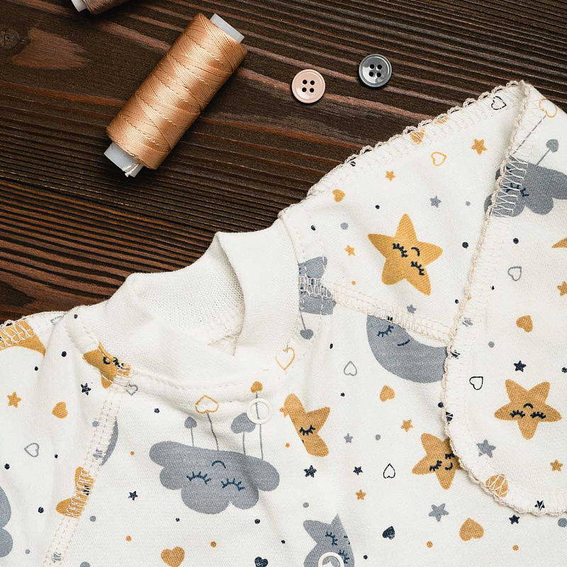 Кофточка для новорожденных выполнена из мягкого футера. Застегивается спереди на кнопки. Кофточка для новорожденного малыша выполнена из гипоаллергенного 100% хлопка, который не раздражает нежную детскую кожу. Застёжка по всей длине обеспечит быстрое переодевание. Швы наружу не будут доставлять малышу неудобств. Ворот с мягким эластичным кантом. Модель с длинным рукавом, дополненным антицарапками, чтобы малыш не поцарапал себя во сне, при желании ручки ребенка можно освободить. Одежда для новорожденного подходит как для девочки, так и для мальчика, можно носить дома (для сна и бодрствования), как первый слой летом и как нательное белье зимой или в демисезон. Дизайн разработан итальянскими модельерами. Товар сертифицирован.