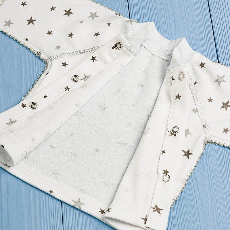 Кофточка для малыша выполнена из мягкого трикотажного материала. Модель с длинными рукавами, украшена милым рисунком. Малышу будет комфортно и удобно благодаря натуральной дышащей ткани. Кофточку легко надеть благодаря кнопкам спереди, а наружные швы не доставят неудобств при носке.