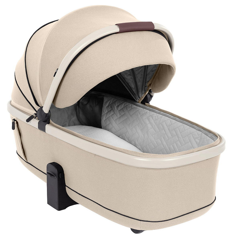 Кап люльки оборудован ручкой для переноски, имеется съемный козырек, дополнительная секция, увеличивающая размер капа, климатическое окно под молнией в корпусе люльки и в капюшоне.