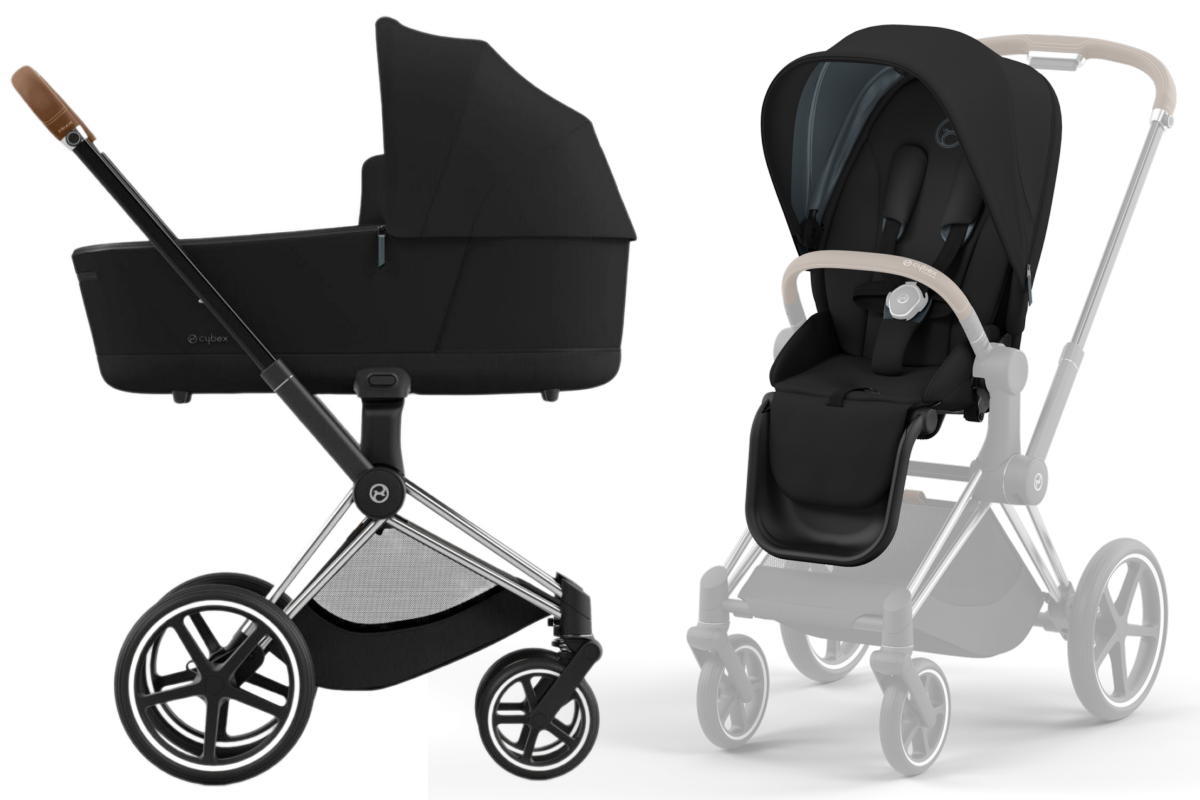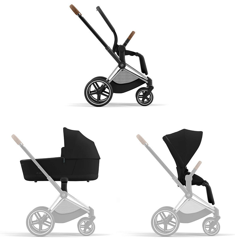 Cybex Priam IV имеет несколько возможных комбинаций по сборке, в зависимости от возраста вашего ребенка. Вы можете прикрепить спальный блок (люльку) Priam IV (Priam Lux) к раме и получить отличную коляску для новорожденных, которую смело можно использовать для прогулок и путешествий с ребенком в возрасте до 6 месяцев. Максимальный вес ребёнка в этой сборке предусматривается в 9 кг. После достижения малышом полугода, можно спальный блок заменить набором чехлов прогулочного блока и в несколько движений получить отличную уникальную прогулочную детскую коляску, которую уже можно использовать для перевозки ребенка до достижения им возраста 4 лет или максимального веса в 22 кг. Но это ещё не все, к раме Cybex Priam IV можно прикрепить таким же образом автокресло (автолюльку) Cybex (приобретается отдельно). Поэтому, вы сможете использовать коляску на протяжении нескольких лет.