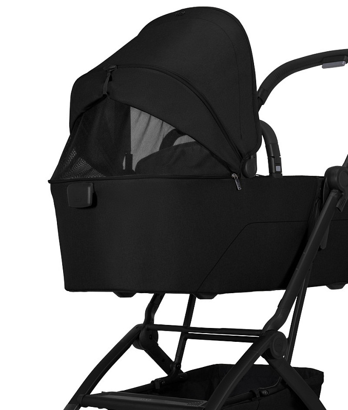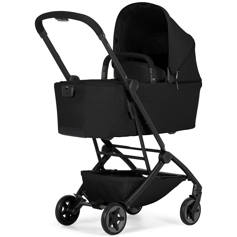 - На шасси можно установить люльку для новорожденного (приобретается отдельно). Она компактно складывается вместе с шасси коляски
