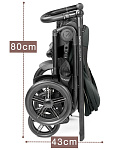 Прогулочная коляска Veloce TC складывается и раскладывается всего одной рукой с помощью специальной централизованной системы складывания, расположенной на ручке. В сложенном виде занимает очень мало места, и сама стоит без опоры, не пачкая ручку и тканевую обивку.